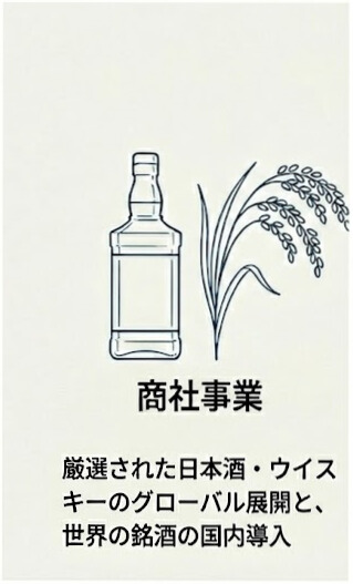 日本独自の「コメ原料ウイスキー」や高品質な日本酒を世界各国の市場へ輸出するとともに、海外の希少な酒類を日本国内へ輸入。双方向の貿易を通じて、豊かな酒文化を繋ぎます。